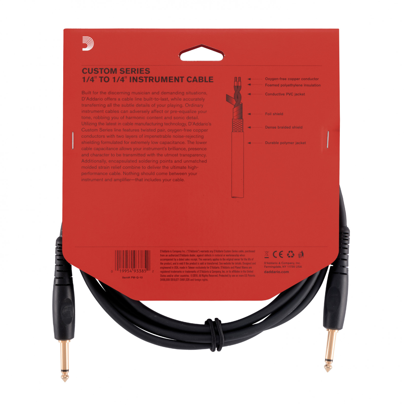 D'Addario Planet Waves G-10 - Cable instrument jack droit Custom noir 3m