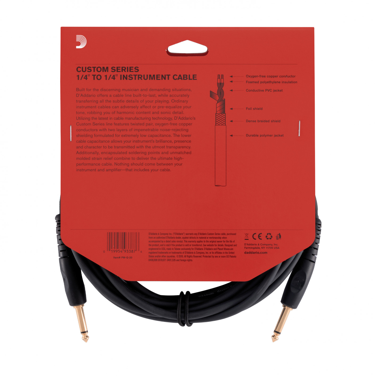 D'Addario Planet Waves G-20 - Cable instrument jack droit Custom noir 6m