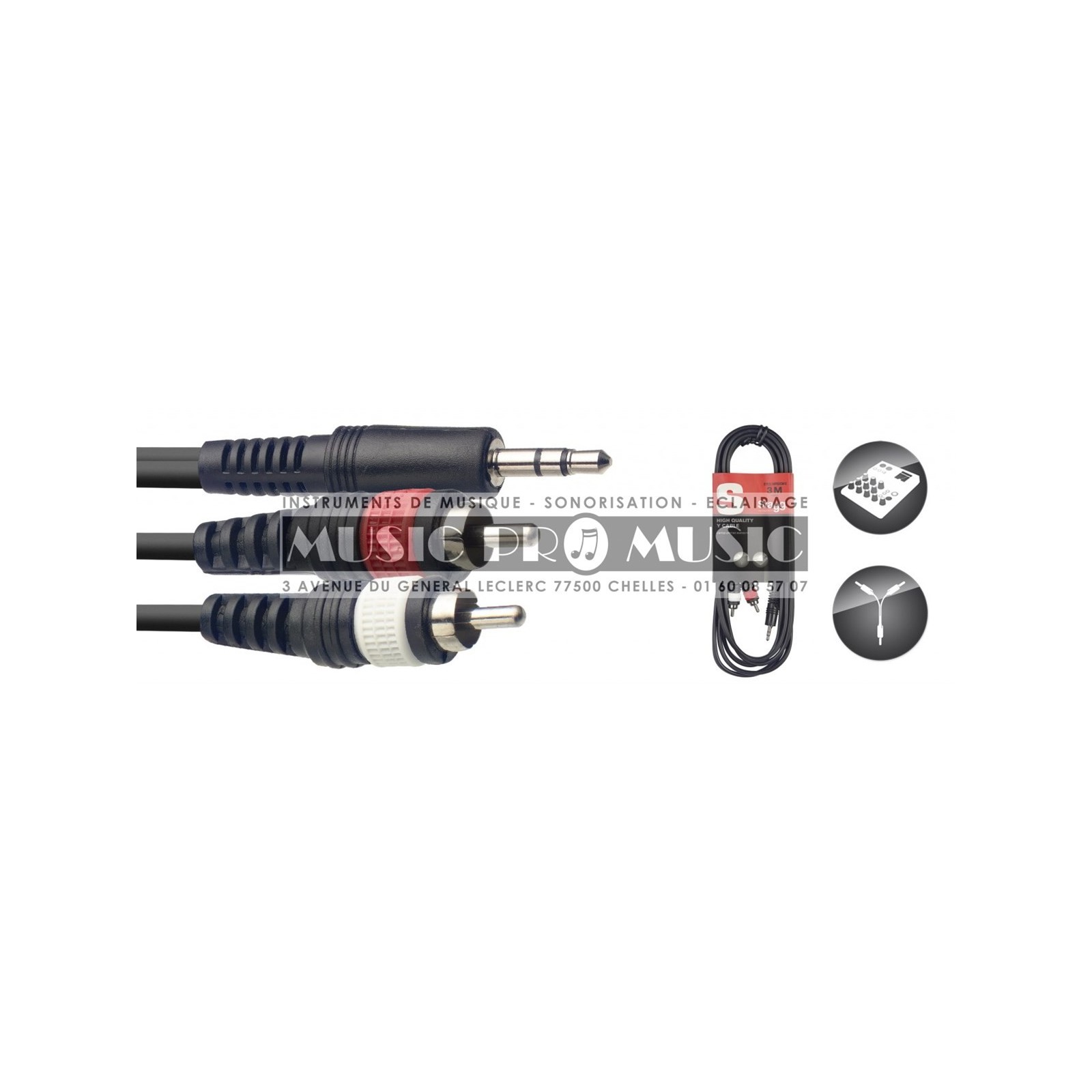 Stagg SYC3/MPS2CM-E - Câble Y Jack 3,5mm mâle stéréo - 2x RCA mâle 3 mètresDestinataire :